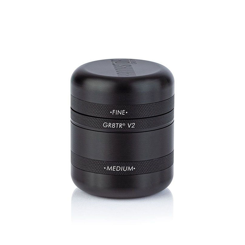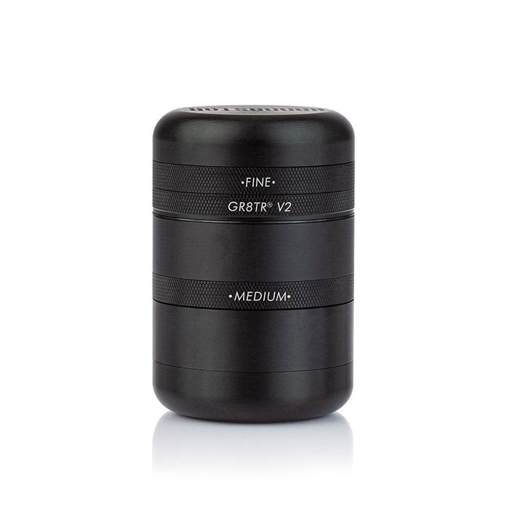 The gold standard in grinder technology, the GR8TR V2 Series Grinder w/ Solid Screen Chamber in Matte Black is the most versatile grinder on the market. It features a deep dish grinding chamber, bonus storage, and can be broken down into a compact storage puck.