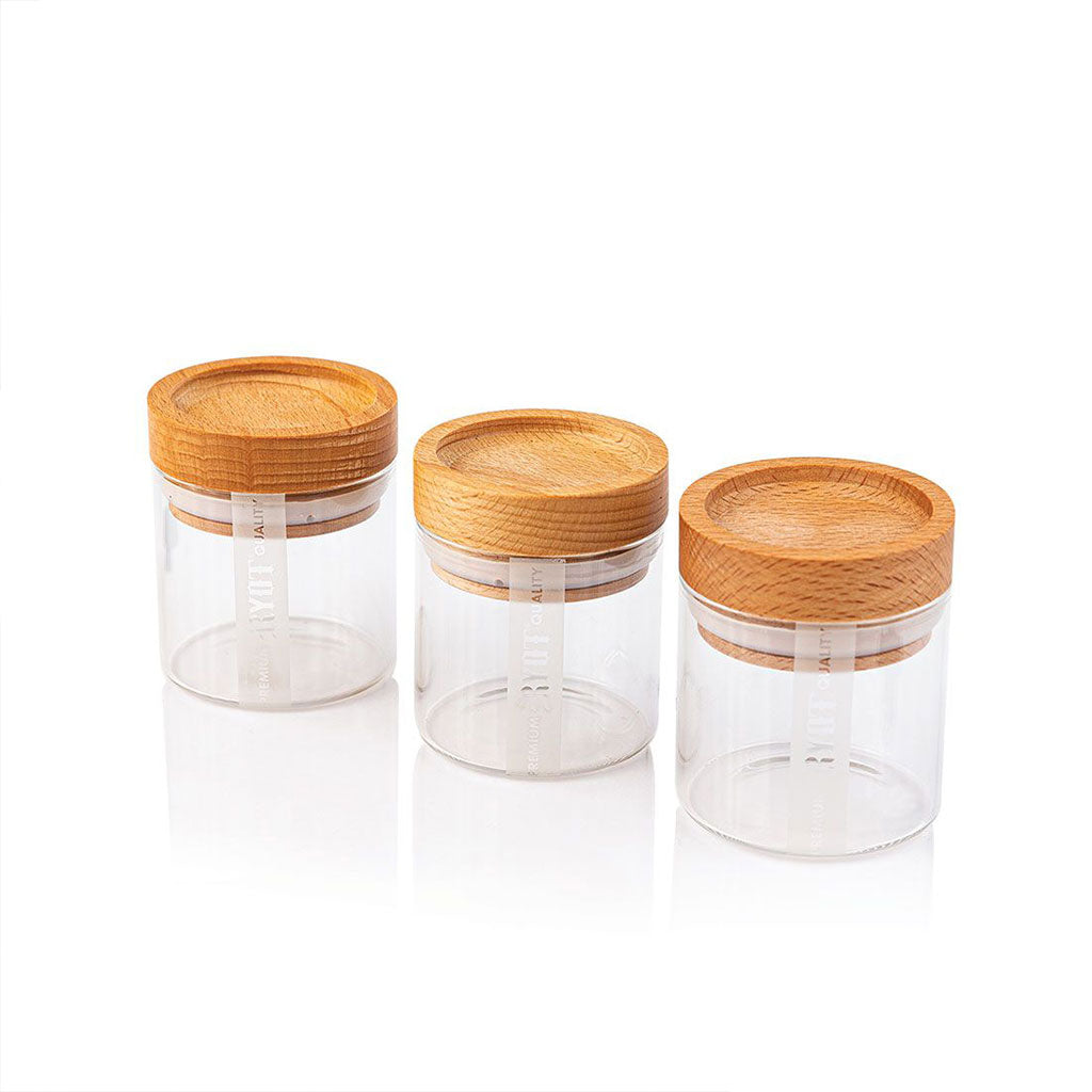 An all-in-one smoking station, the elegantly crafted RYOT 11" x 10” Solid Top Locking LOCK-R Box with Walnut Rolling Tray and 3 Storage Jars comes with three storage containers, and a removable, easy scoop walnut tray.